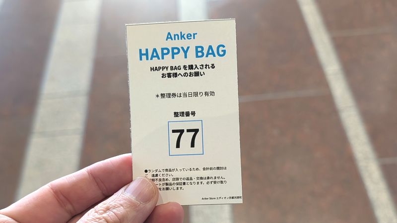 Anker福袋は販売数量がかなり少ない年もあって、整理券もらえるかドキドキしちゃいます。