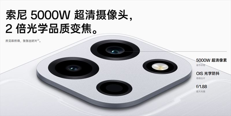 「OnePlus Turbo 6」の背面には5000万画素(標準 F1.88 OIS)+200万画素(モノクロ F2.4)のトリプルカメラを搭載。