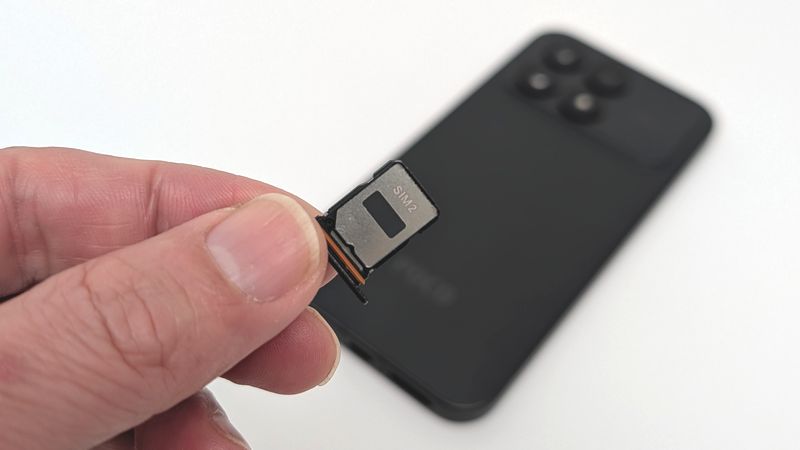 「POCO F8 Pro」のカードスロットはnanoサイズの2枚の物理SIMを同時に挿せるようになっています。