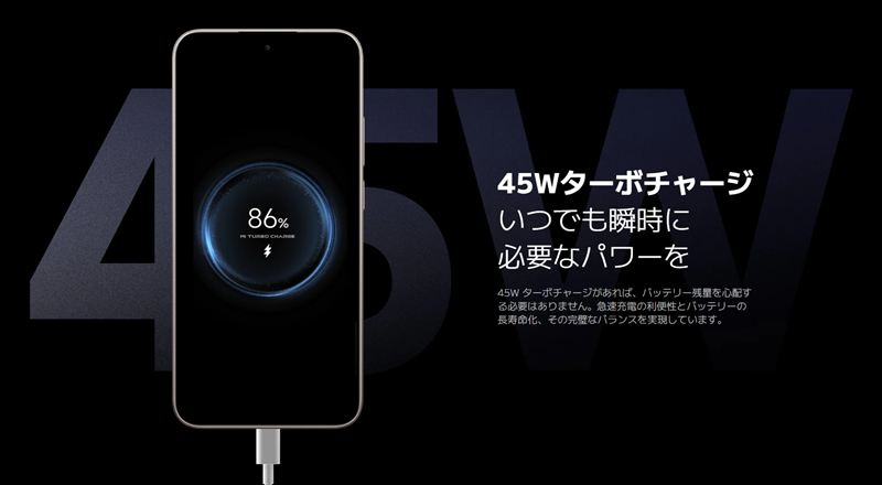 6300mAhバッテリー&45W急速充電に対応!