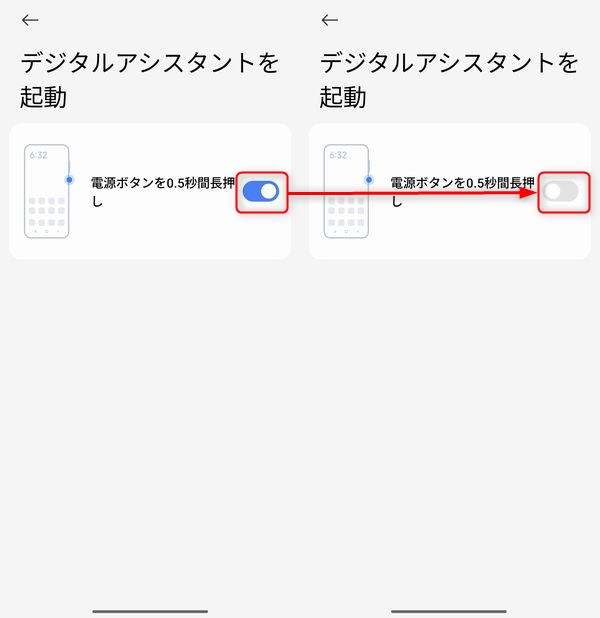 電源ボタンを0.5秒長押しでデジタルアシスタント起動の設定になっているので、これを無効化します。